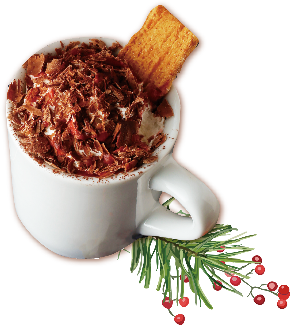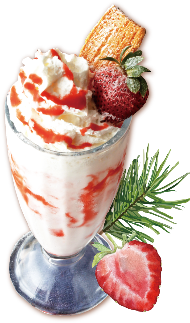 ホットココアにストロベリーと生クリーム。仕上げにふわふわの削りチョコをふりかけました。